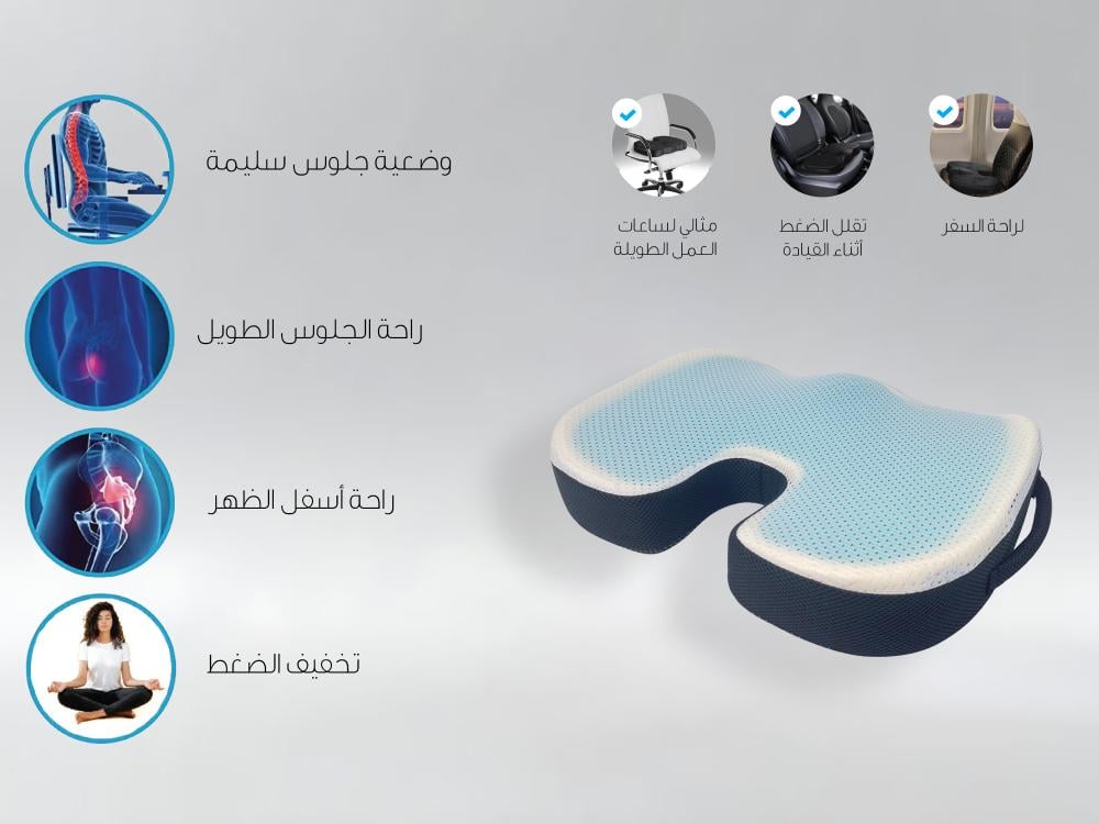 يخفف الضغط عن عظم العصعص ويعزز الوضعية الصحية، مما يجعلها مثالية لمن يعانون من البواسير، آلام أسفل الظهر، أو بعد العمليات الجراحية.