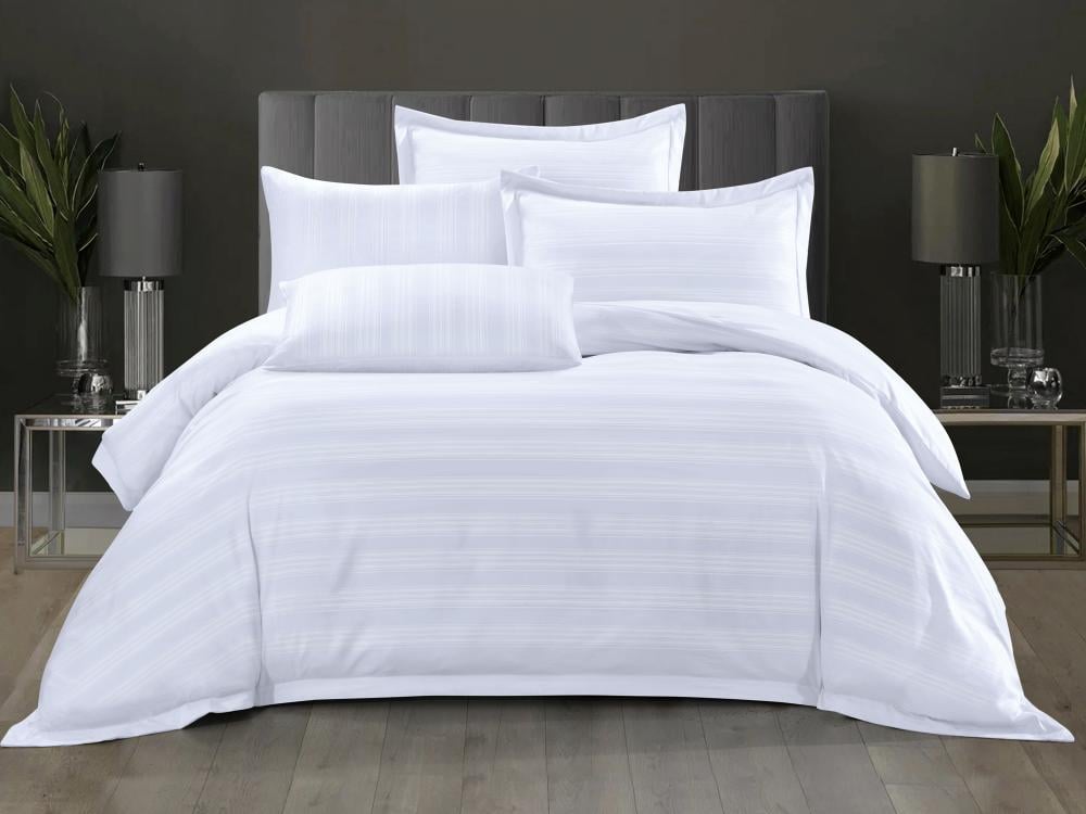 ارتقِ بتجربة نومك مع مفرش CROWN الفندقي باللون الأبيض النقي.