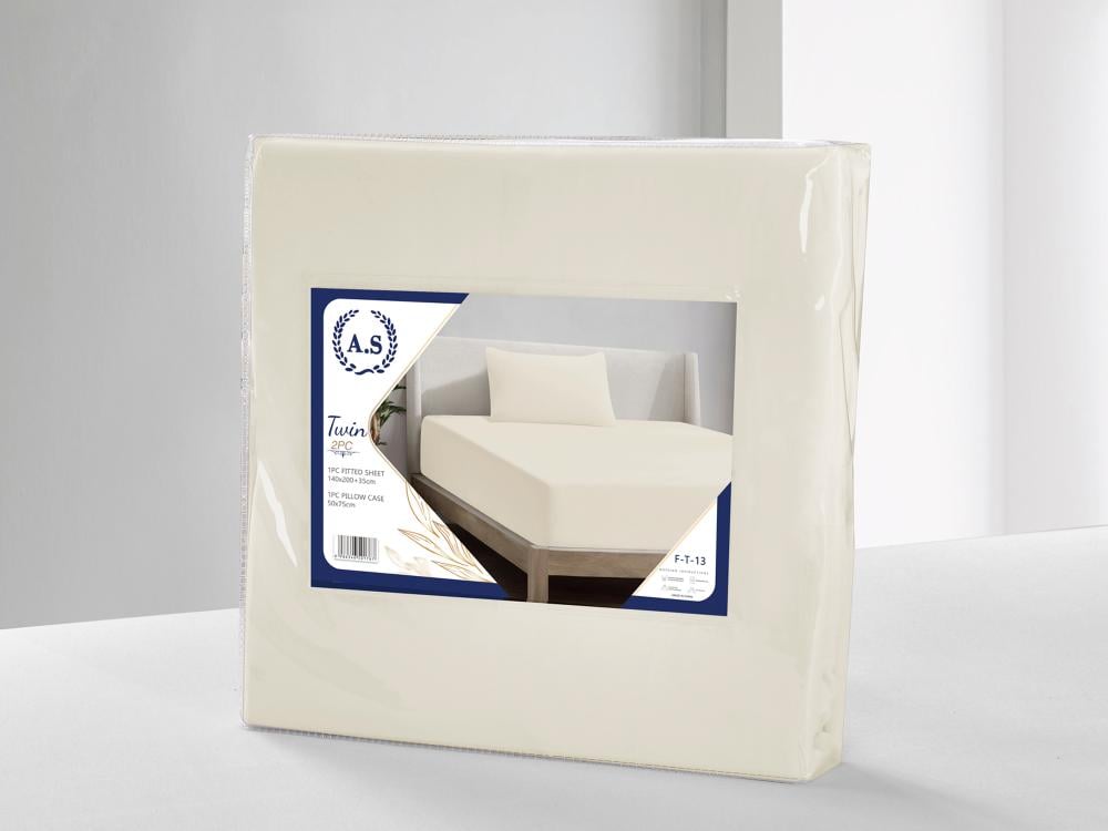 شرشف فيتد مطاط مفرد ونص - 140×200 سم - 2 قطع - بيج