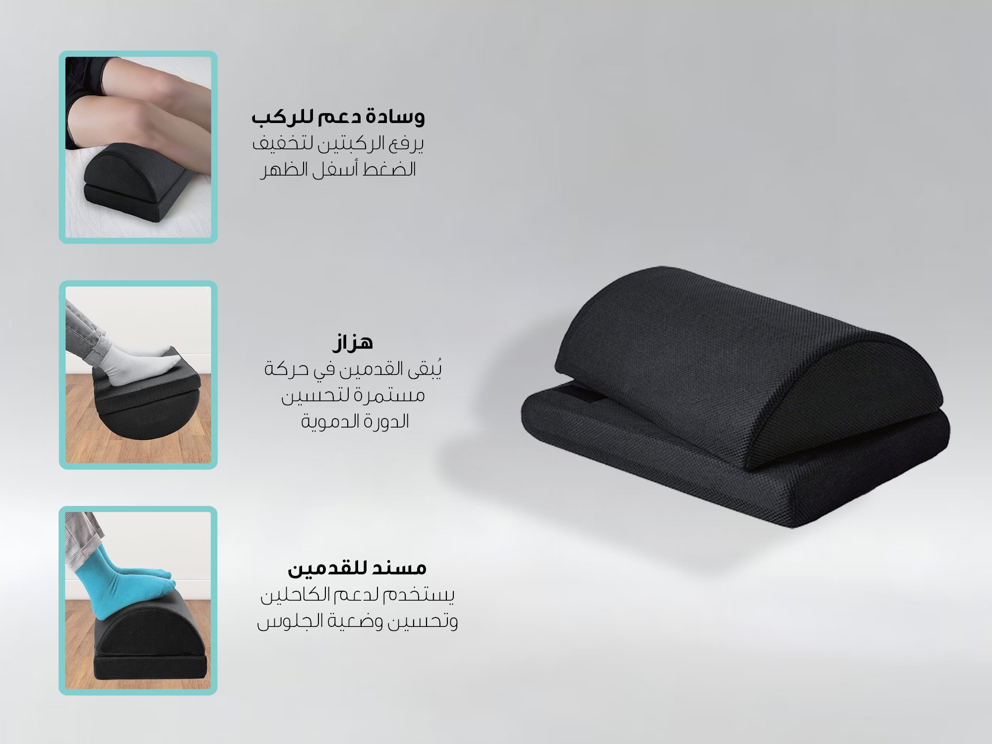 سواء كنت تعمل لساعات طويلة خلف المكتب، أو تبحث عن راحة أثناء السفر أو الجلوس في المنزل، مسند القدمين والدعامة هو الحل الأمثل لدعم ساقيك وتحسين وضعيتك.