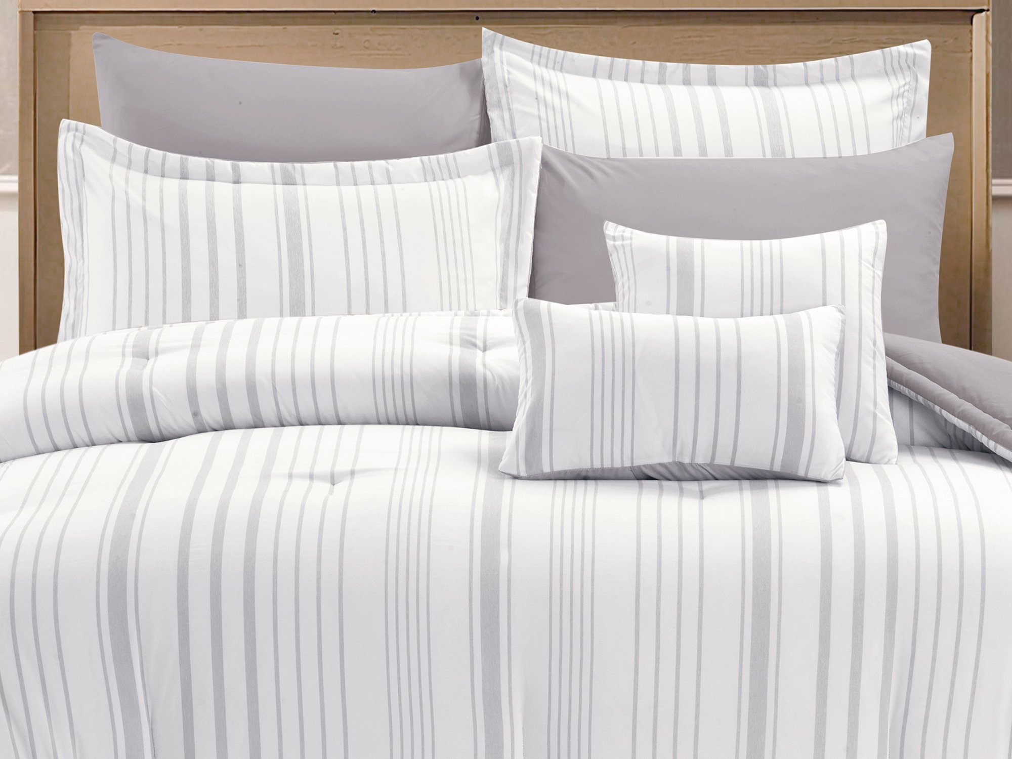 المفرش مكوّن من 10 قطع متكاملة، تشمل كل التفاصيل اللي ترفع من جمالية غرفتك، وتوفّر لك الراحة المطلوبة طوال الليل.