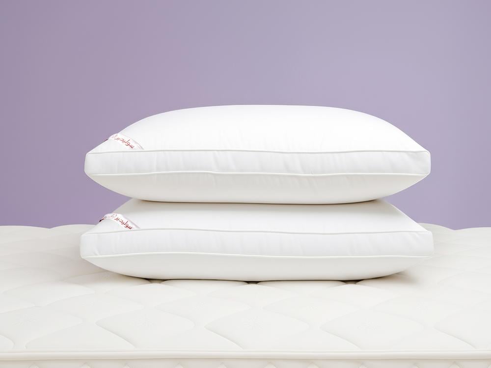 نم برفاهية مع مخدة SOLIDAIR المليئة بحشوة من أفضل خامات المايكروفايبر ,وبغلاف مصنوع من القطن بنسبة 100% مع 250 غرزة بإرتفاع يعطيك دعماً ممتازاً للرأس والرقبة.
