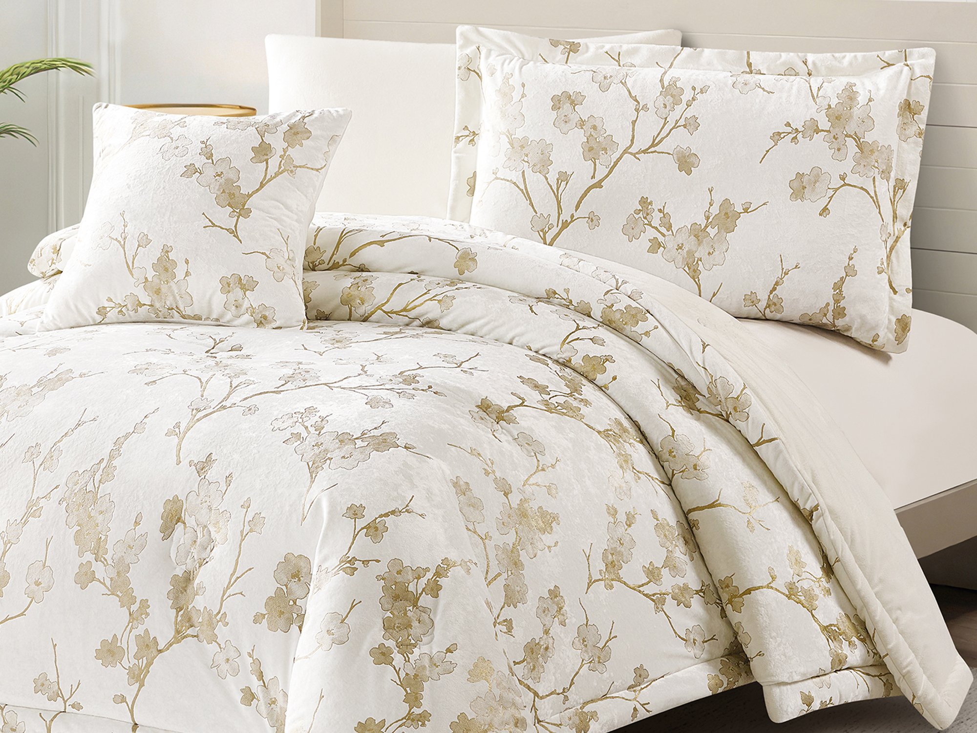 وجه المفرش مصنوع من مخمل Dutch Ice Flower Velvet بتطريز راقٍ يضفي لمسة فخمة على الغرفة، أما الوجه الداخلي فهو من Super Soft Velvet يمنح إحساس ناعم ودفء متوازن يناسب أجواء الشتاء الباردة.